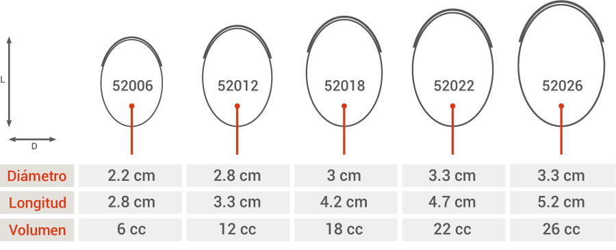 Las prótesis de testículo GC Aesthetics® están disponibles en cinco tamaños diseñados en base a las necesidades reales de los pacientes: